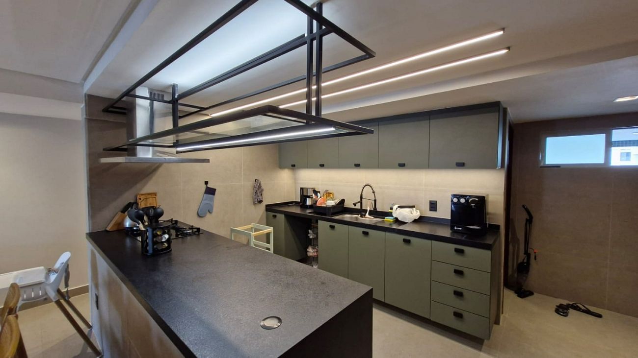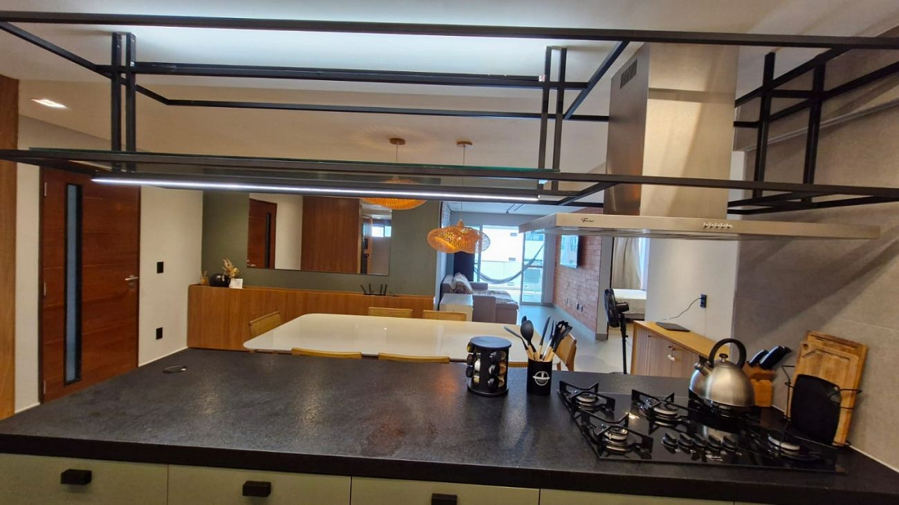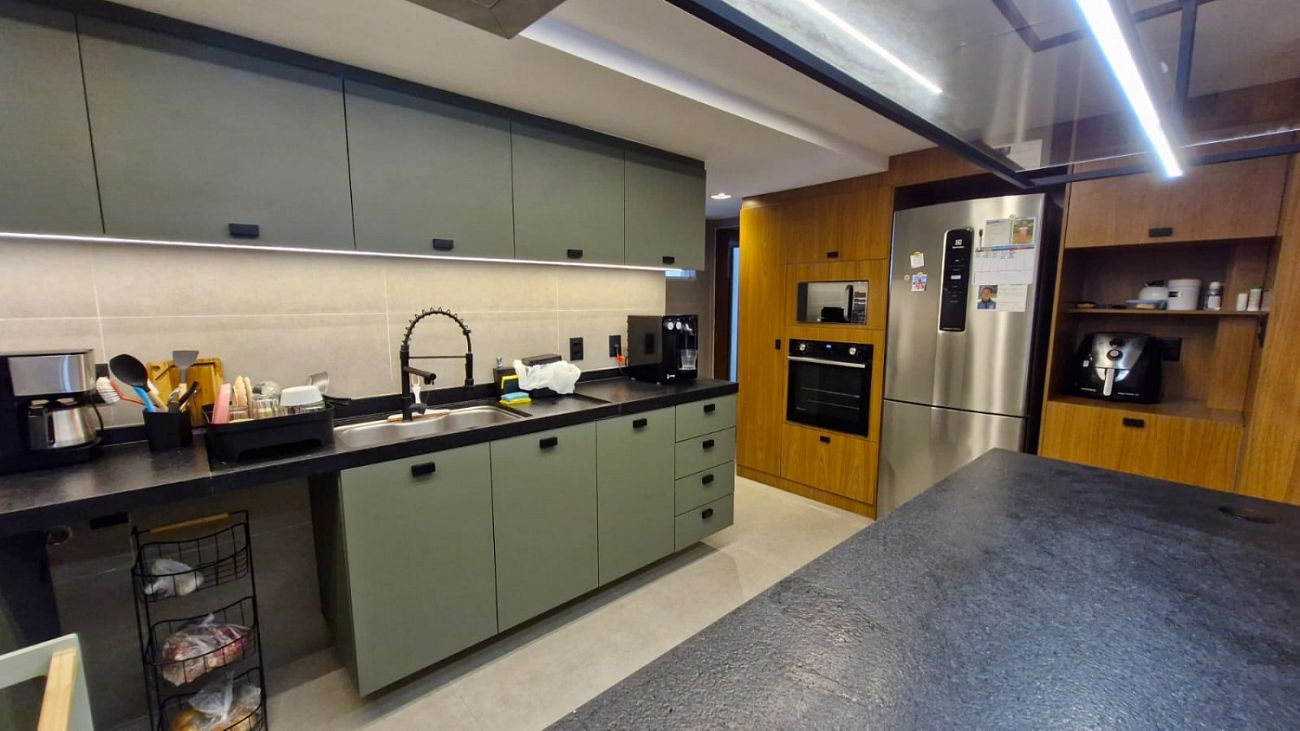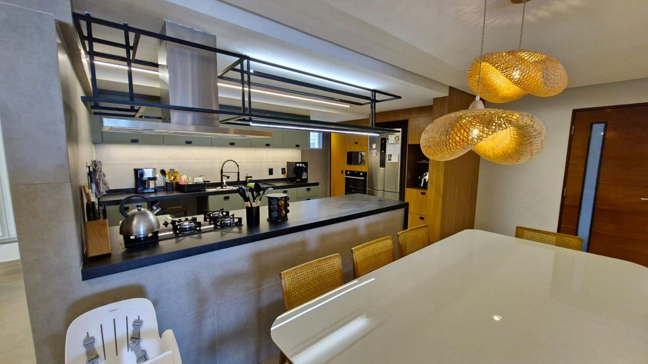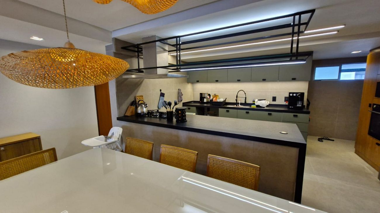 • O apartamento conta ainda com móveis planejados de alto padrão, projeto de iluminação e acabamentos modernos, que elevam o nível de conforto e elegância em cada detalhe.